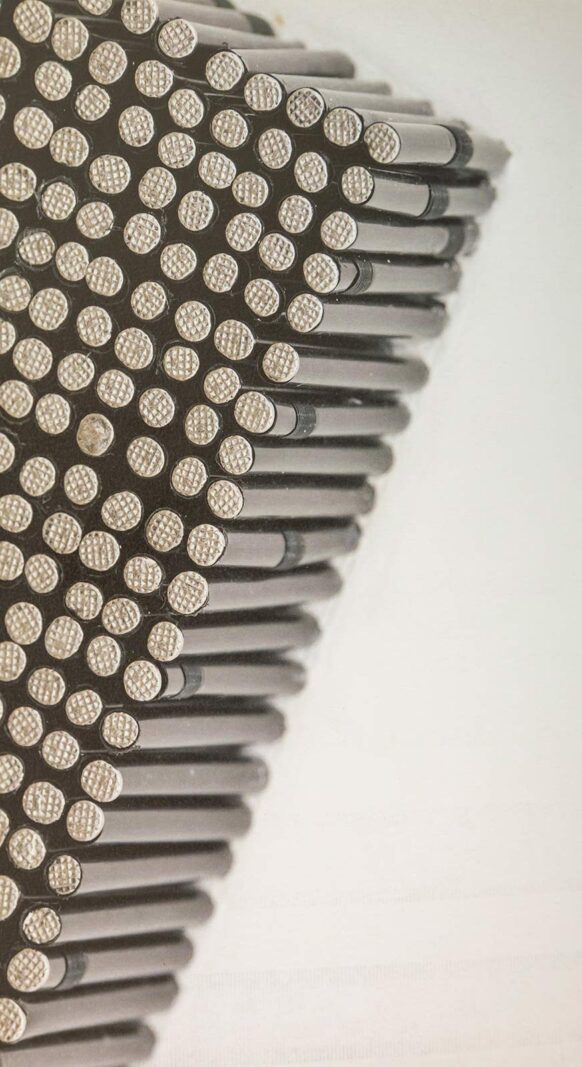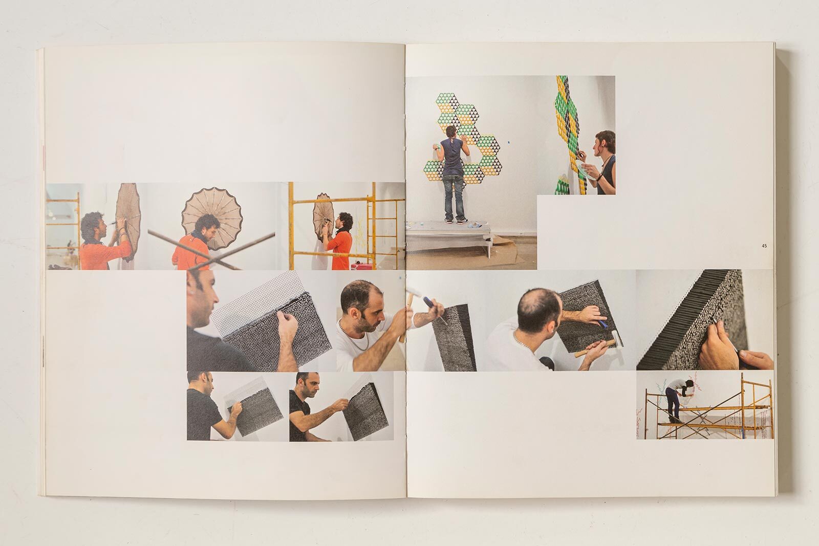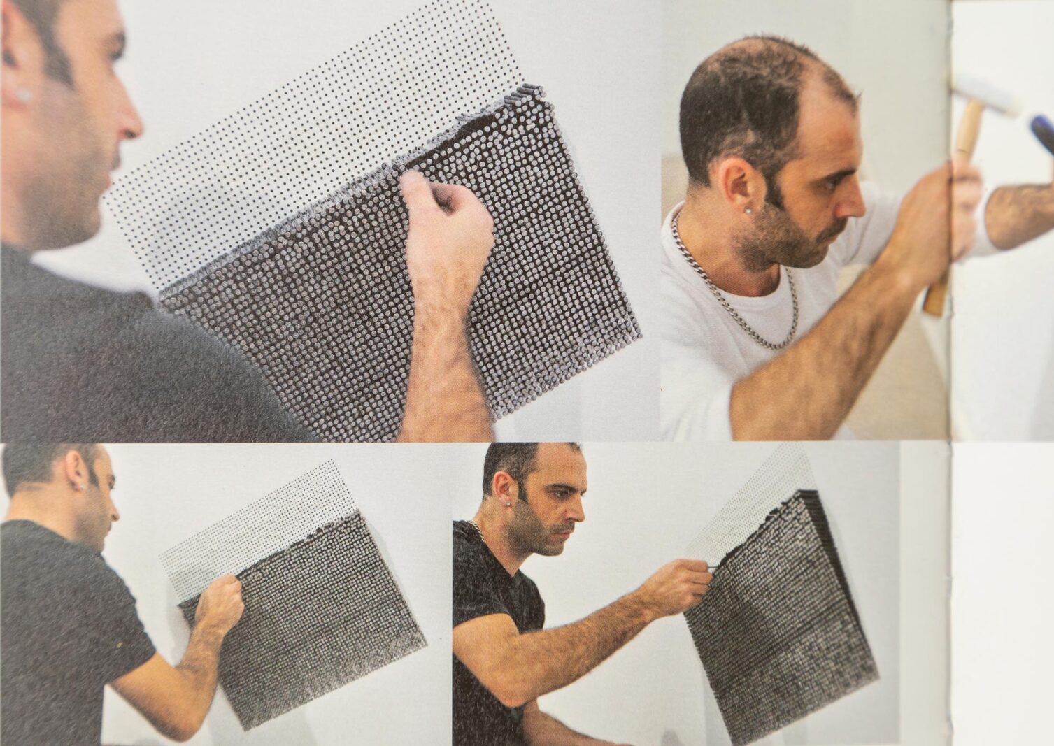 Montaje de la obra 3600 Blows. Unidades, versión negra. Clavos y pajitas 42x42x6 cm